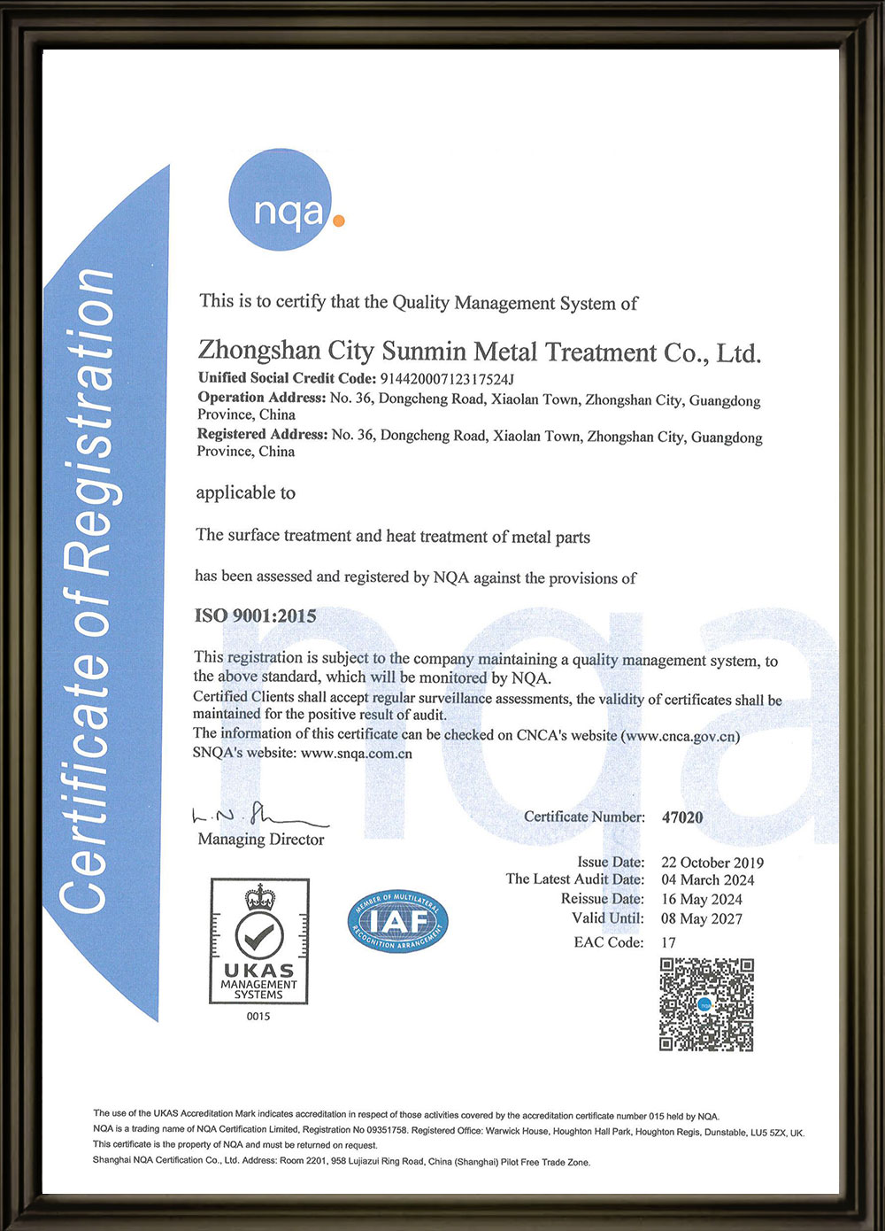 中山市三民金屬處理有限公司座落在偉人孫中山的故鄉—中山市。是專業從事金屬熱處理和表面改性的加工企業。三民公司先后引進德國、日本先進的表面改性技術和設備,為客戶提供先進的金屬熱處理和表面改性技術服務。廣泛應用于家電?OA、光學制品、自動車、機械制造等領域。不但滿足了新世紀客戶的需要,并時刻關注著服務的技術品質,成為享譽海內外的金屬表面處理企業。近年三民公司投資數千萬新建了設備先進的加工處理廠房,目前廠房面積達10012㎡,占地面積達21300㎡。現有從業人員約280人,十多年來,三民公司以先進的技術水平和不斷提升的質量保證贏得了廣大客戶的好評。成為SONY、EPSON、HONDA、TOYOTA、Panasonic、CANON、OLYMPUS、APPLE、RICOH、NIKON、LIGHT-ON、京瓷光學、FORD、華為、和EATON等眾多國際知名企業的長期合作伙伴。如今,三民公司將繼續秉持“客戶的滿意是我們的心愿”之方針,不斷創新,銳意進取,竭誠服務于廣大新老客戶。